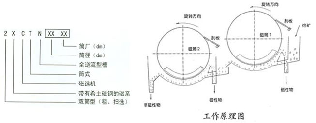 該類設(shè)備利用永磁磁系所產(chǎn)生的磁力,將礦漿中的磁性礦物吸收引到圓筒表面上來,并隨著圓筒一起旋轉(zhuǎn),待脫離磁場作用后在重力、(刮板)作用下,排出機(jī)外,而非磁性物料從尾礦口排除,完成分選作用。