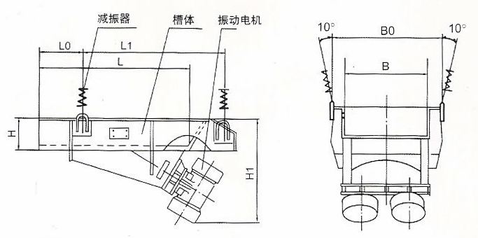DZ系列電振動給料機是利用新型振動電機驅(qū)動,使機體沿槽體方向作周期直線往復(fù)振動來實 現(xiàn)均勻、定量給料。該系列振動給料機由給料槽體、振動電機、減震裝置組成。